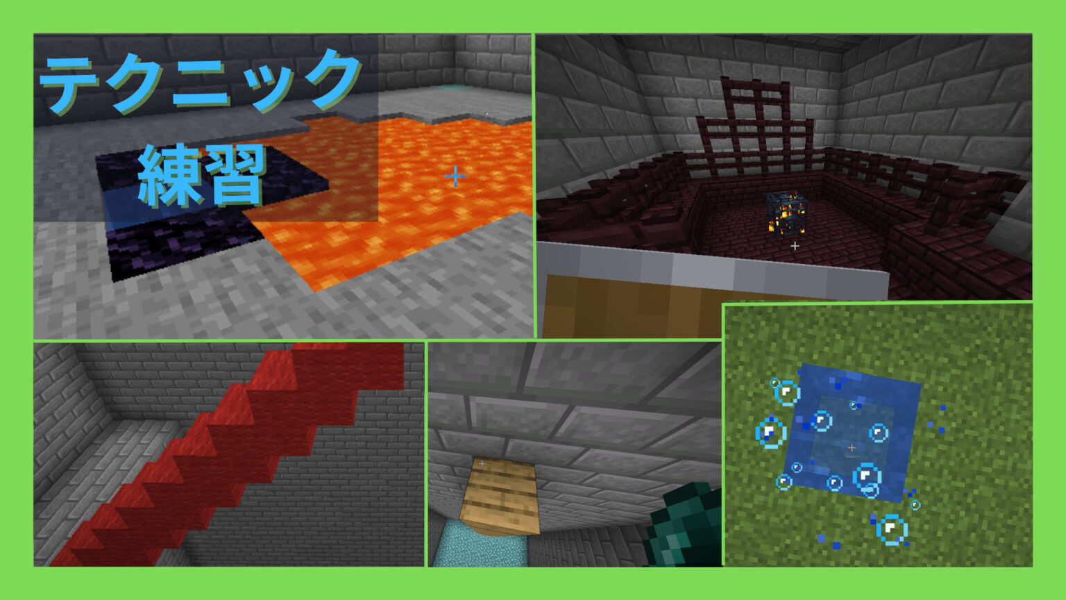 エンパールや着地、ネザーゲート作成など、マイクラの各種技術を練習できる配布マップ。
